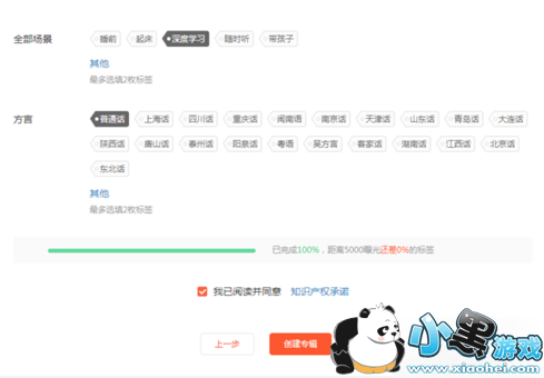 5.直接点击所属标签,完成后点击最下方的创建专辑。