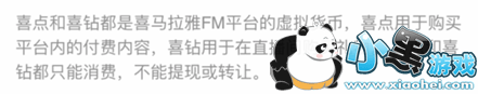 2、喜点,在喜马拉雅中是用于付费或者是送礼物使用的,是不可以转让或者重新变为钱提现出来的。