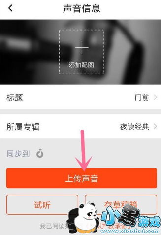 系统会自动跳转到上传界面,选择好封面,输入文章的名字,点击上传声音。