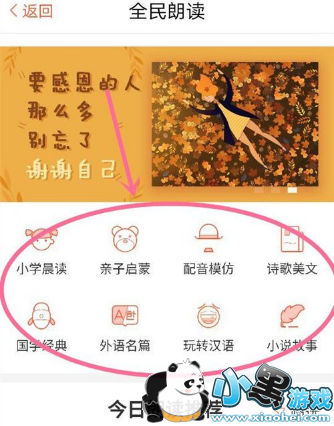 进入全民朗读界面后,选择想要朗读的类别进入。