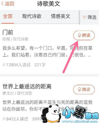 然后,再选择想要朗读的文章,点击文章旁边的朗读按钮。