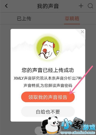 上传完声音后,点击领取我的声音报告。