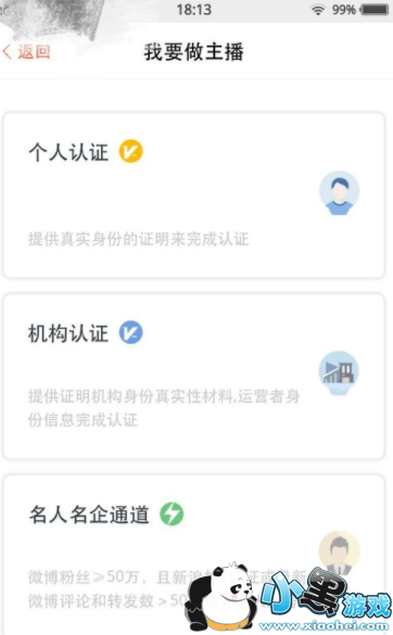 6.根据个人情况选择个人认证、机构认证、名人名企通道完成认证就可以了。
