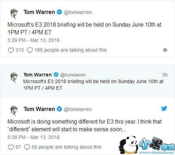 软今天正式公布了2018年E3展前发布会的时间,微软表示今年的E3展前发布会将会在美国东部时间6月10日下午4点举行,也就是北京时间6月11日凌晨4点。微软表示为了给欧洲玩家更好的直播收看时间,微软计划让今年的发布会提前一个小时,也就是说国内玩家或许要在6月11日凌晨4点收看本次微软E3展前发布会。