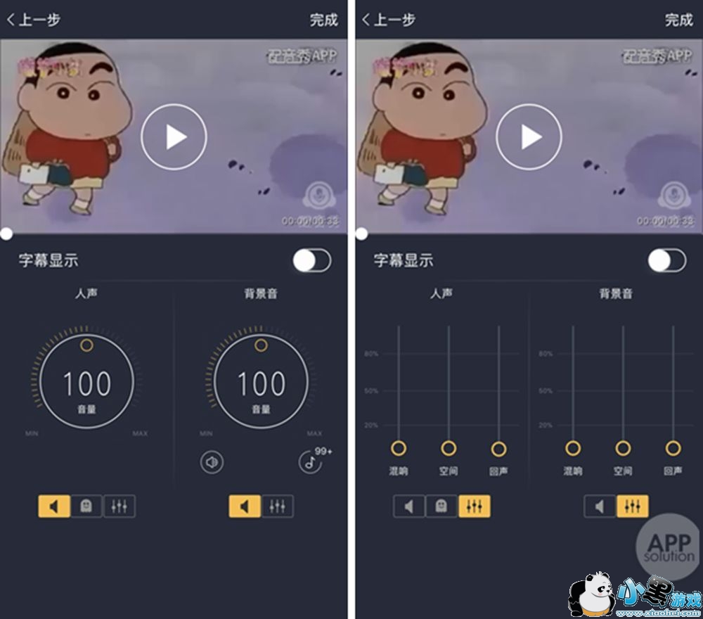 后期还可对「人声」和「背景音」进行音量、变声、回声等调整。