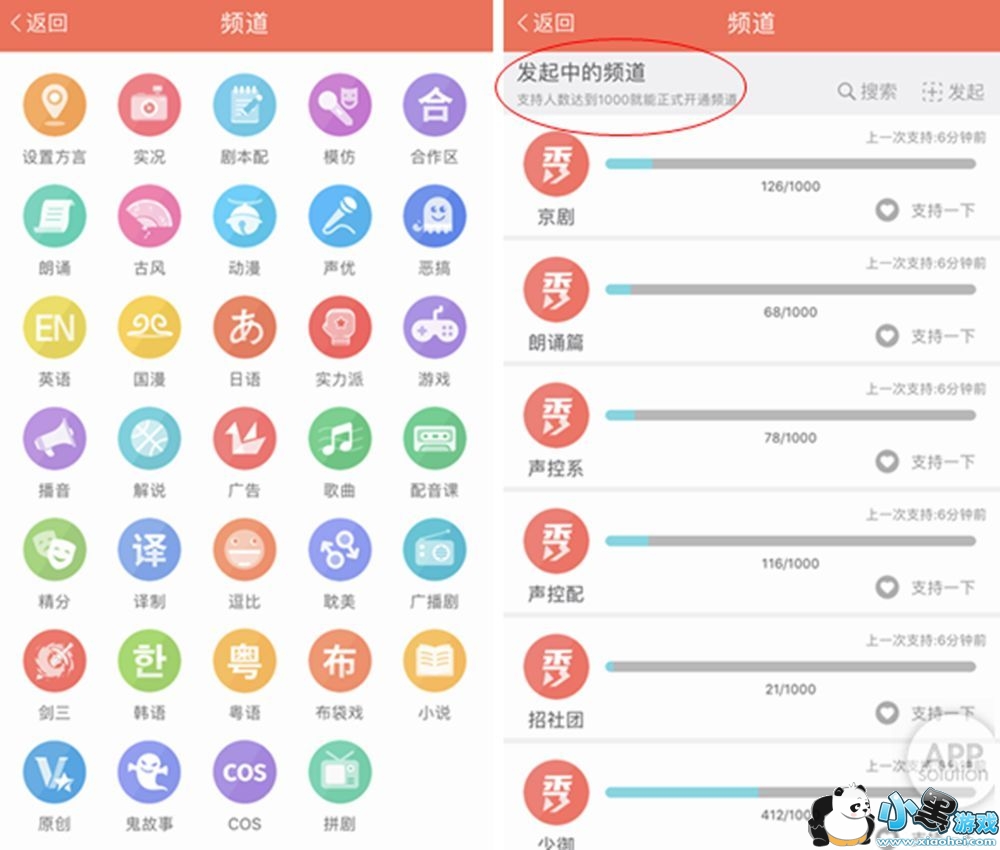 《配音秀》是一个资源与种类都不容小觑的配音软件。一打开 App,点进「配音频道」,不仅有剧本、古风、动漫、游戏,甚至是鬼故事、布袋戏、译制片等都有。因为《配音秀》中的频道是可以由用户来发起的,只要支持人数达到 1000 就能正式开通该频道。所以,你能在这里看到许许多多有趣但相对小众的频道。
