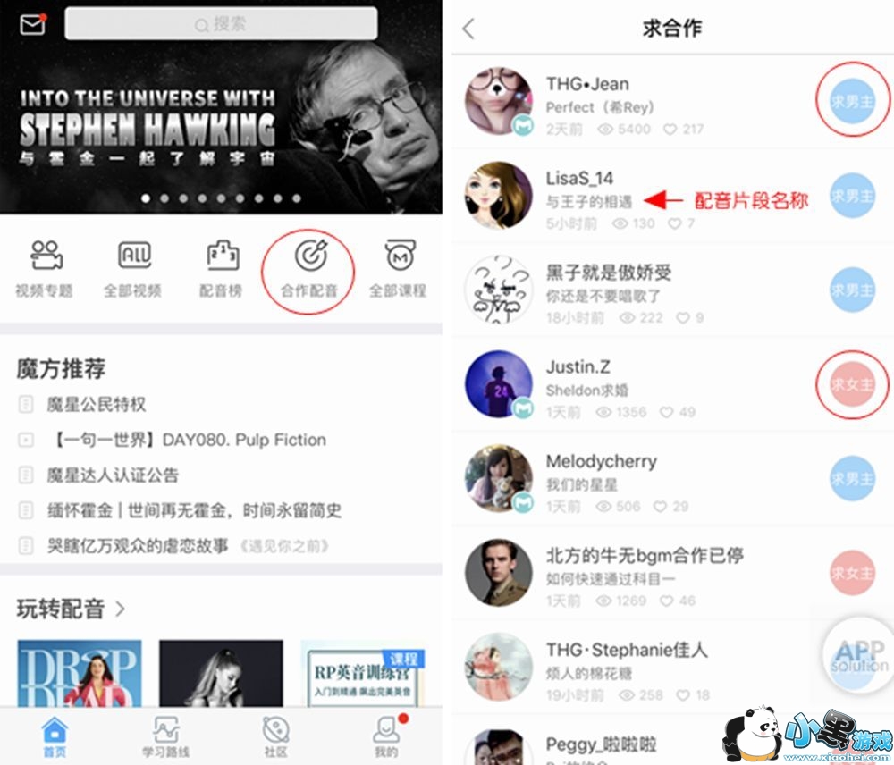 而那些需要合作完成的配音片段,你不仅可以私下找小伙伴一起录,还可以将你的邀请发送在《英语魔方秀》上面。许多优秀的配音作品都是合作产生的哦!