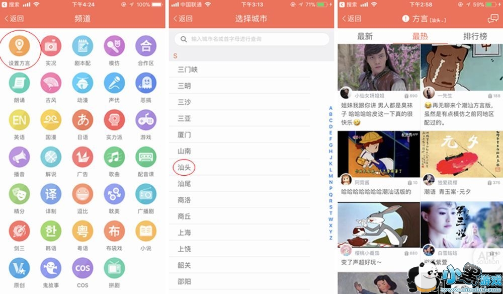 有趣的是,在「设置方言」中选择你的城市,搜索结果就会出现用该地方言配音的视频作品,比如粤语、潮汕话、东北话等。