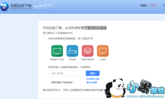 3、打开远程下载后迅雷会提醒我们绑定下载到的设备,根据自己情况选择绑定设备然后点击绑定;