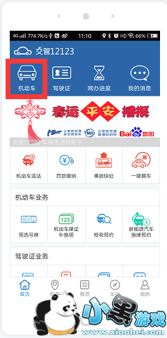 第三步:在登录的首页里,我们点击“机动车”选项卡,如下图所示: