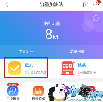 这时,将会打开“流量加油站”界面。在流量加油站中,点击“签到”。