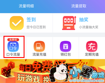 签到以后,我们就可以免费领取 1M 流量。当然,你若是还想免费领取更多的流量,则可以点击下方的“口令流量”。