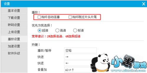 4、此时会看到有“ 始终自动连播、始终跳过片头尾 ” 这个两个选项。直接打上勾即可。