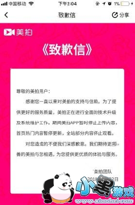 美拍团队在给用户的致歉声明中解释“正在进行全面的技术升级及系统维护工作”笔者发现,美拍Web端也停止访问,但第三方平台如微博仍内容仍可以访问。