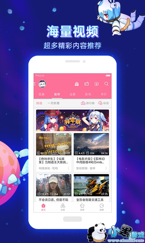 致力于ACG等娱乐领域内原创及二创的内容分享,集结精彩番剧、萌宅直播、经典影视、硬核游戏、数码评测、迷人宅舞、原创音乐、深度专栏、动人相簿、时尚美妆、搞笑日常、猫党狗党萌宠养成等海量精彩内容,更有鬼畜调教等神秘势力~~