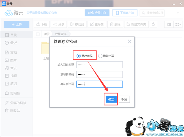 2.依次输入之前的密码和新密码,点击确定。修改成功。