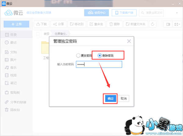3.同理,删除密码,点击删除密码,输入当前密码,确定,就能删除成功啦。如图。