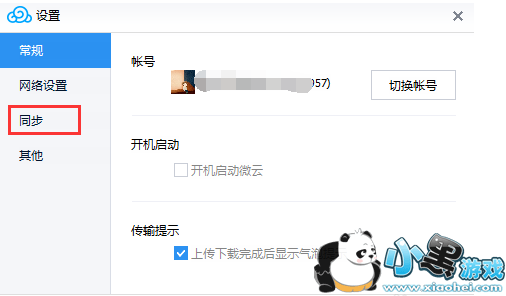 2.在设置页面中,默认显示的是常规设置页面,点击同步菜单,进入同步功能设置页面
