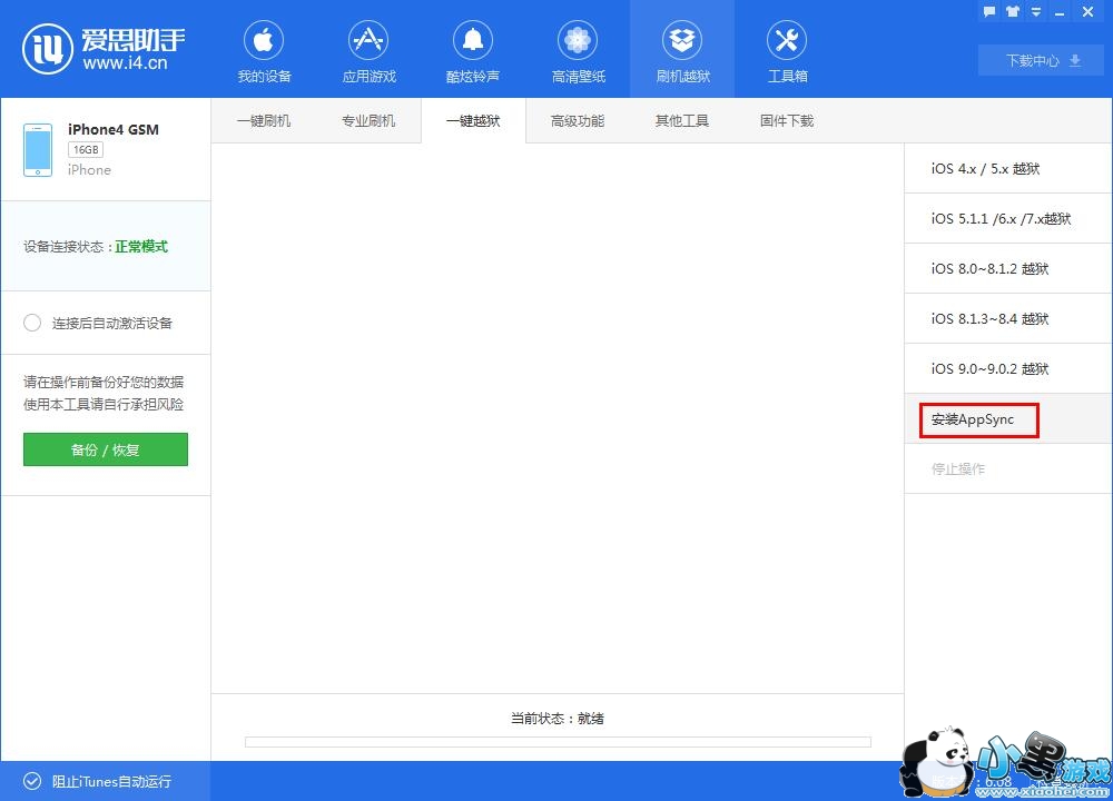 9.再点击爱思助手-刷机越狱,安装“AppSync”,至此,整个刷机越狱过程完全结束,您可以安心使用您的手机了;