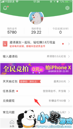 1、打开趣头条,在我的里面即可看到兑换提现功能,如图: