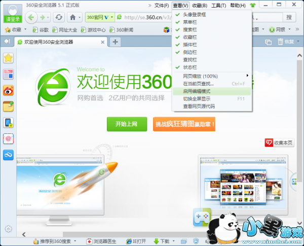 如果使用360安全浏览器6.X版或其他浏览器,软件没有提供网页编辑模式功能,怎么办?我们可以用大多数浏览器提供的一个通用功能