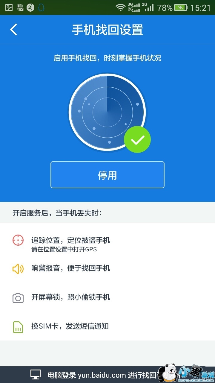 如果说手机安全应用容易遭到重点“关照”的话,那么用于备份与网盘资源下载的百度云就没那么容易引人瞩目了,百度云不仅可以自动备份用户手机里的数据及照片等资料到百度云盘,还有附加的兼职功能,具备“手机找回”与“手机忘带”功能。