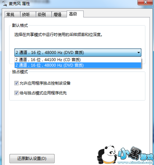 6、点击高级,变成dvd模式,录音效果最佳,然后点击应用,确定即可,