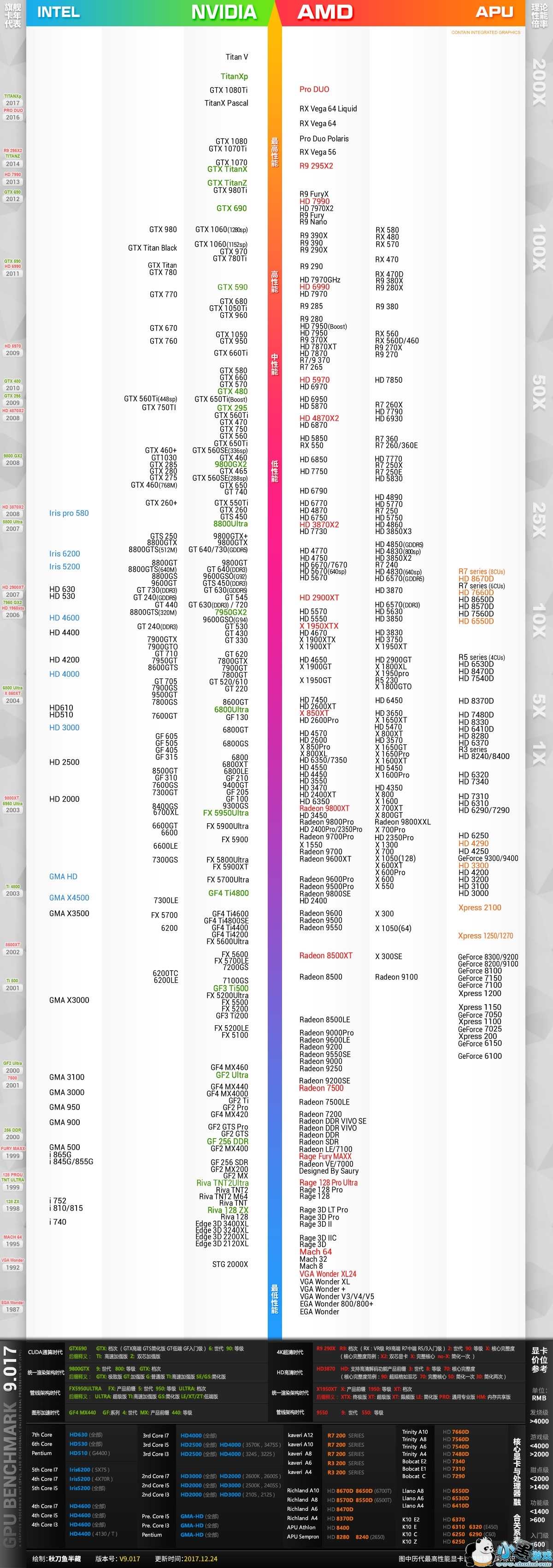 显卡厂家在2018年都还没有公布新的显卡,所以以下天梯图将在一段时间内都是最新的,不会有什么变动。