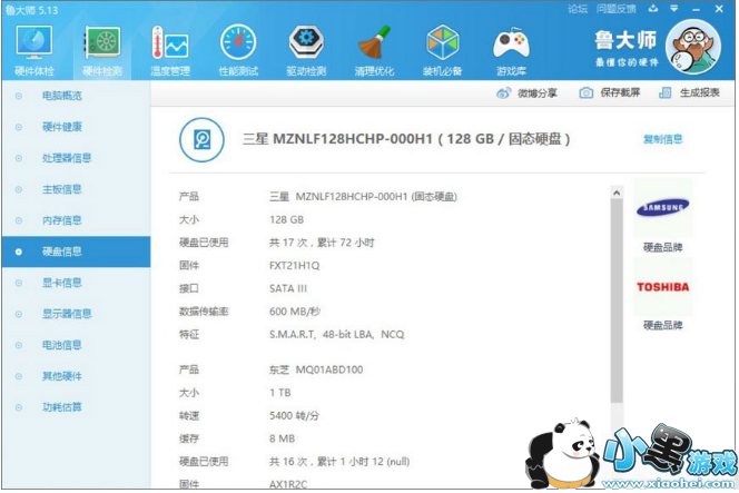 在电脑上装个鲁大师,然后在硬件检测中,切换到“硬盘信息”,之后就可以看到硬盘使用时间了,如图。