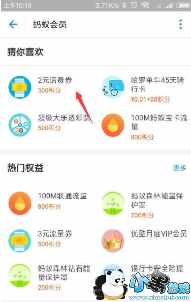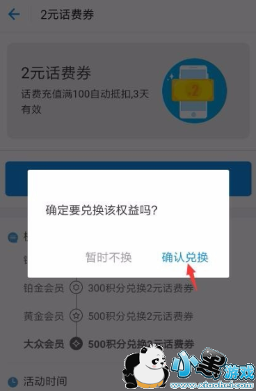 3.查看自己的积分,满500积分就可以兑换2元话费券了