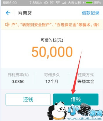 6、都选同意协议就可以贷款了,贷款的数额会2小时候到你的银行卡中,在规定的日期内连本带利还款即可。