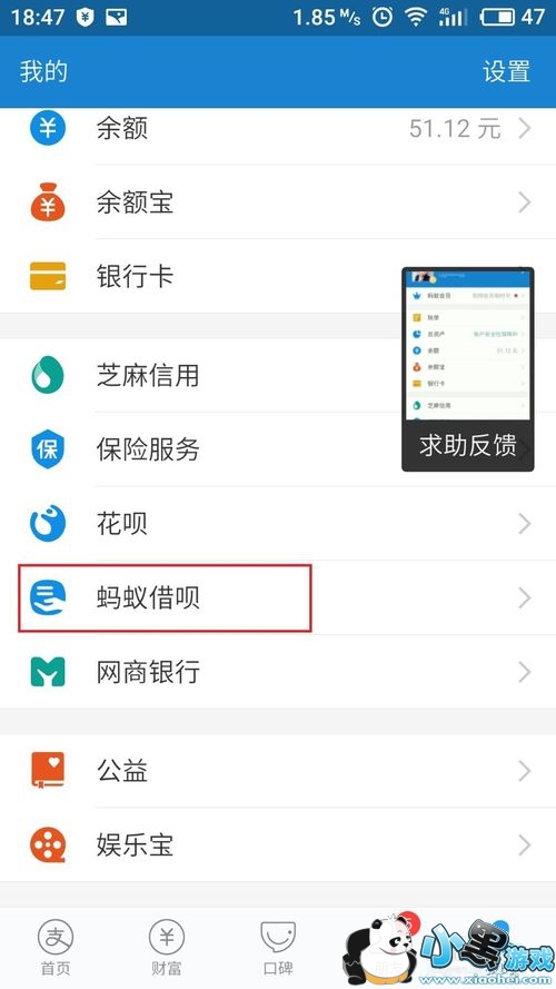 3、在当前界面下,往下拉,找到【蚂蚁借呗】,如图所示: