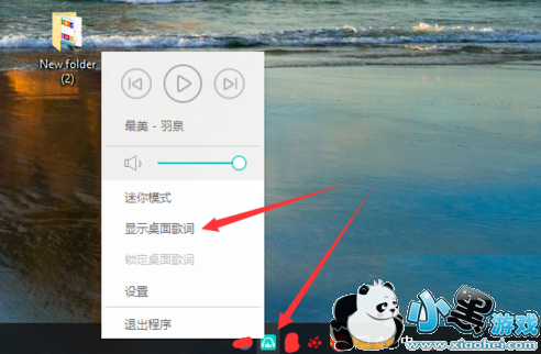 5.还有另一种方法可以打开桌面歌词:鼠标右击右下角的百度音乐,在弹出的菜单中,点击 显示桌面歌词。