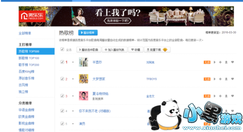 3.在榜单的左边,会有所以歌曲的分类,可以进行查找自己喜欢的