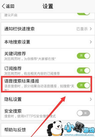 在设置中,看到语音搜索播报现在是灰色的,向右拉动圆圈。