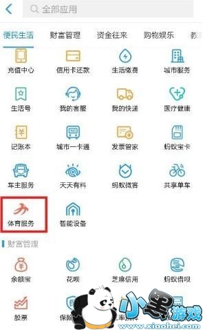 1、打开支付宝,在首页点击“更多”,知道“体育服务”选项;