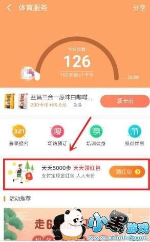 4、点击天天红包赛入口,天天5000步,天天领红包;