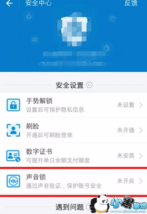 3.安全中心界面点击【声音锁】开始设置声音锁。