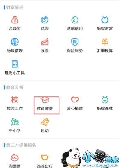3.然后我们下拉到下面的教育缴,如图所示,这个就是用来缴费的!