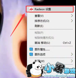 1. 在桌面点击鼠标右键选择"Radeon设置",打开Radeon设置面板;