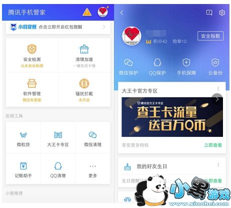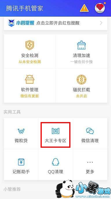 为了让用户享受更优质网络连接体验,腾讯公司联合中国联通推出的腾讯大王卡,支持用户免流量使用腾讯上百款应用,包括微信、QQ、视频、音乐、游戏等高频软件。而为了方便用户管理大王卡,腾讯手机管家7.5版本上线了“大王卡专区”功能,帮助用户随时查看每日流量使用情况及相关特权。大王卡用户只需下载安装最新版本的腾讯手机管家后,点击“大王卡专区”功能,或者从个人中心专设的入口进入,成功验证手机号后,就可以查看免费流量和收费流量使用情况以及话费余额,避免发生流量超额。