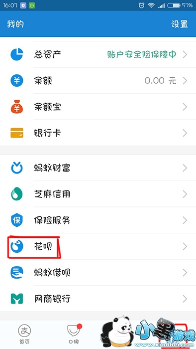 1 、打开支付宝,点击右下角“我的”,然后再点击“花呗”