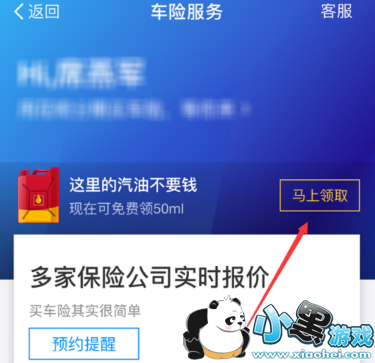 进入车险服务后,我们可以看到有马上领取汽油的图标,点击领取;