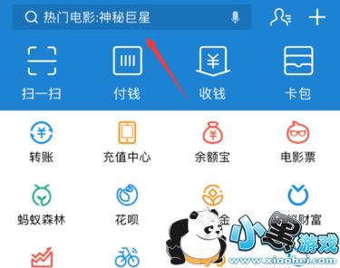 首先,我们打开手机支付宝钱包app,然后点击页面上方的搜索框,如图所示;