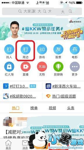 1.打开新浪微博,点击“发现”,在点击“周边”,如图:
