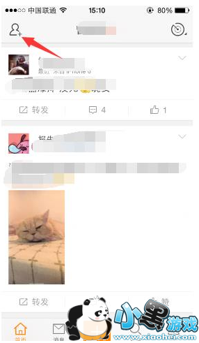 1、在新浪微博手机端首页点击左上角图标,如图: