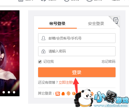 2.点击微博入口后进入首页登入页面,如下图所示用微博客户端扫码登入或者直接输入账户密码。