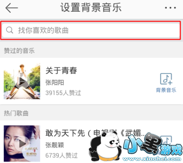 进入背景音乐设置页面之后,那么此时我们就可以看到页面中的热门歌曲了,您可以在【搜索框】查找喜欢的歌曲,也可以在此页面中直接添加为背景音乐。当然了最好是点击歌曲先试听一次好不好听。