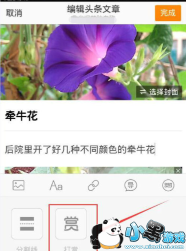 8.确定以后会回到文章编辑页面,点击右上角的“完成”按钮,如图所示: