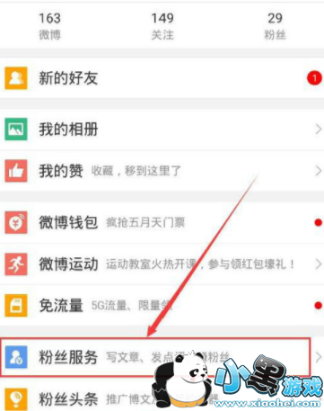1.打开登录微博后,在个人页面点击“粉丝服务”,如图所示: